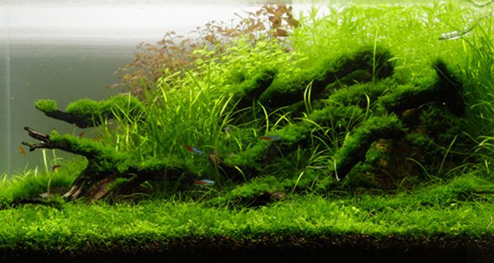 Tanaman aquascape Java Moss terlihat layaknya ganggang rumput laut. Akan tetapi tanaman ini memiliki warna hijau terang, dan kontras dengan rumput laut yang mempunyai warna putih kekuningan. Java Moss biasanya tumbuh di bebatuan dan juga kayu apung. Java Moss juga tidak memerlukan pemeliharaan ekstra. Tanaman ini butuh suhu air 22 sampai 25 derajat celcius, dan dengan pencahayaan sedang. Namun apabila tanaman bisa tumbuh cepat, berikan pencahayaan yang tinggi untuk aquascape.