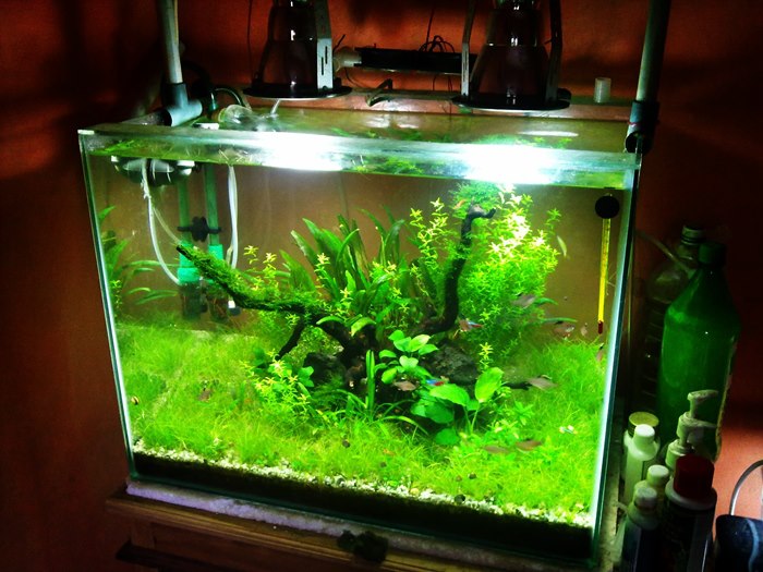 itu saja yang saya ingat xixix 😀 (…ini juga melihat gambar) untuk perlengkapan aquascape lainnya , untuk pencahan saya memakai lampu ulir 2 buah merk Phil**s 23 watts untuk ukuran Aquariumnya 45cm Tinggi , 60 cm panjang dan 40 cm lebar. memang untuk ukurang aquascape tinggi aquarium ini kurang proporsional untuk ukuran panjang 60 cm, ini memang dulunya aquarium ini peruntukannya dahulu untuk hobi lobster.